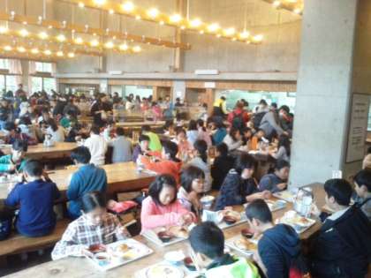 初めての食堂で少しバタバタしましたが,みんなモリモリ食べています!
