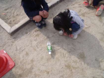 温度計を使って,9時半と正午の地面の温度をはかりました。