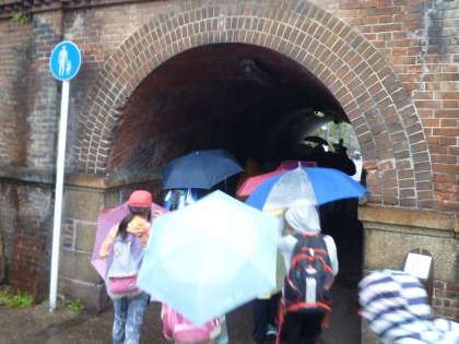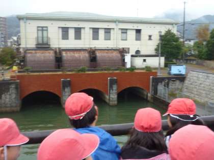 社会科の学習で疏水見学に行きました。あいにくの雨天でしたが,子ども達は興味をもって学習していました。