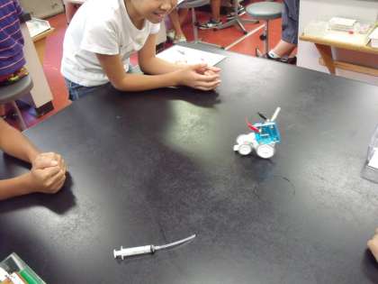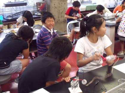 9月21日(火)に6年生は青少年科学センターへ実験学習に行きました。6年2組は,「電池でGO!」という学習です。電池がどのようにして電気を作り出しているのかを考え,実験しました。化学の力を使って電気をおこし,電子メロディを鳴らしたりモーターを動かしたりしながら,電気がおこる仕組みについて学習しました。さらに,環境にやさしい電池についても学習することができました。