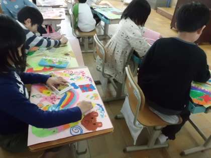 初めにたまごの中を想像しながらたまごをつくります。次にたまごを割って,中から飛び出すものを考えながら楽しく描いていきました。