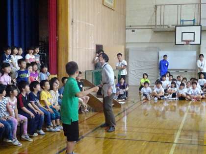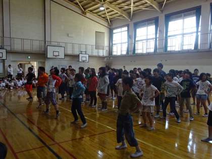 1年生をむかえる会がありました。5年生は,「アイアイ」の曲に合わせて歌ったり踊ったりしました。1年生と一緒にじゃんけんゲームもしました。1年生に楽しんでもらえてよかったですね♪