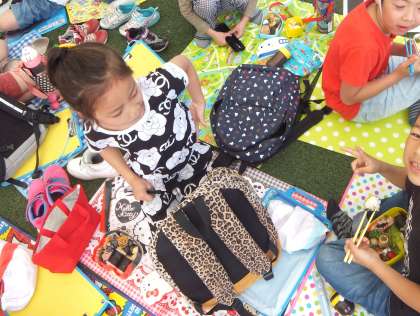 朝からよく歩いたので,とてもお腹を空かせていた子どもたち。
