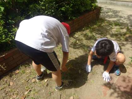 今日は,「ゴミ0活動」がありました。5年生は,花壇の落ち葉や運動場の石拾いをしました。一人一人が一生懸命頑張って活動していました。