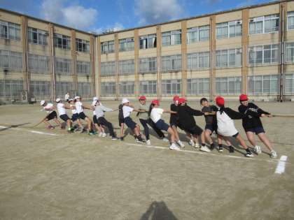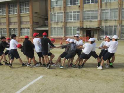 クラス間で棒引きと綱引きの