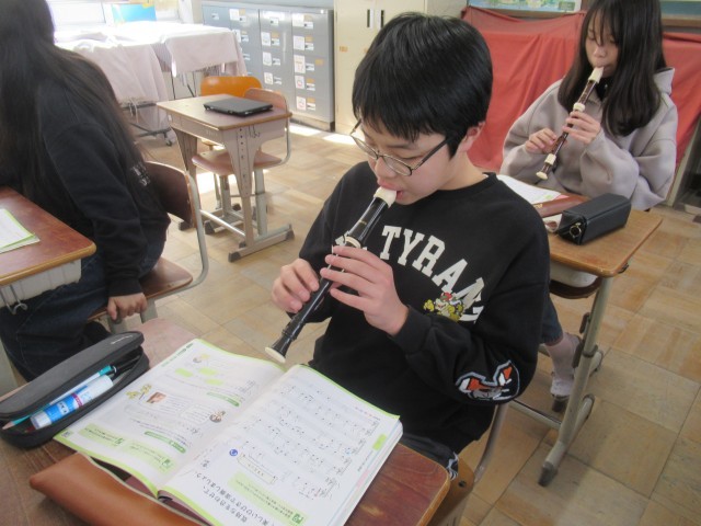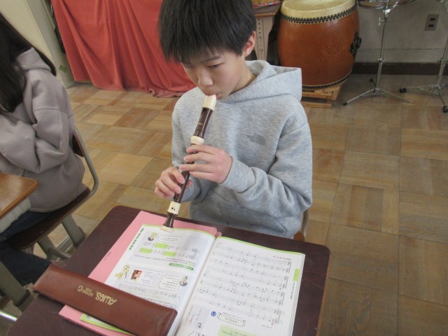 卒業式で歌う「最後のチャイム」の練習をしました。
