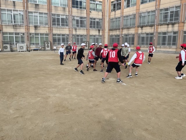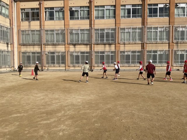 今日は2回目の学習で、以前よりもコートを広く使えるようにパスの仕方を工夫しながら試合をしていました。
