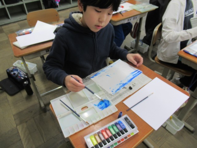 少しの絵の具と水を使って上手にできていました!