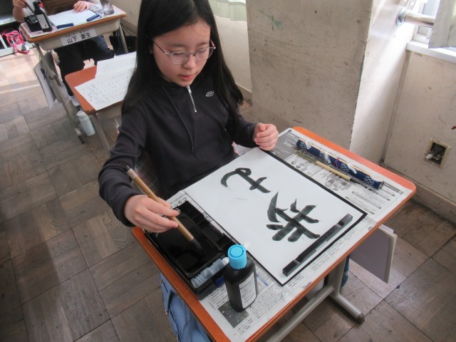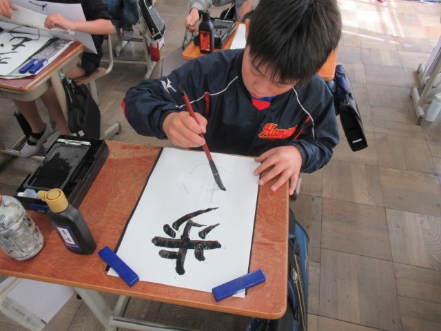 6年生初の習字の学習。