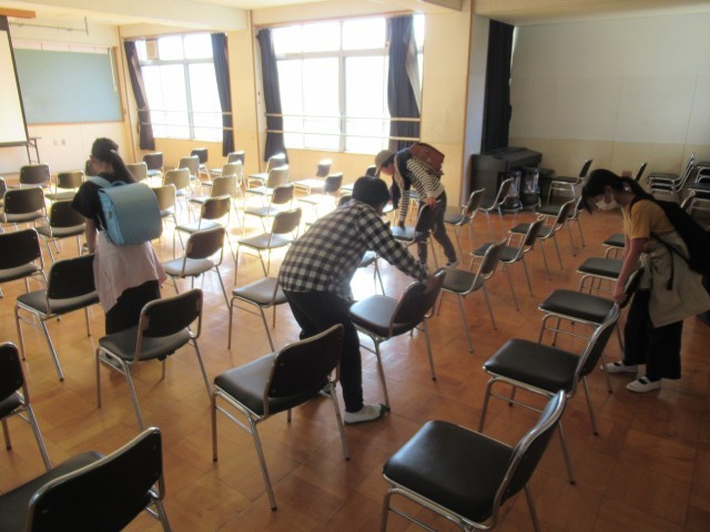 明日の保護者説明会で使用する教室の準備を