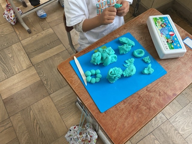 今回は食べものでしたが、今後は休み時間に違うものを自由に作りながら粘土で作りだす喜びをたくさん経験したいと思います。
