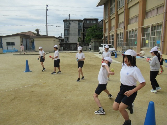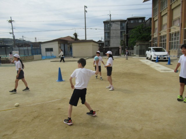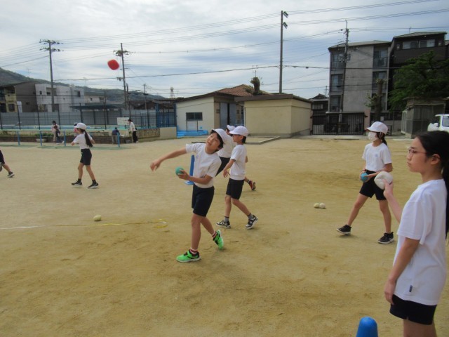 体ほぐしの学習の中で、遠投をしました。