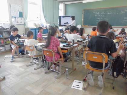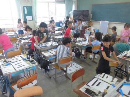 3年になり毛筆の学習が始まっています。今日は「一二」の学習をしました。