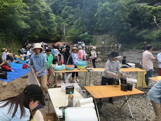 本校の子ども達もたくさん参加しました。午前中は少し肌寒く,水遊びをしていた子ども達の中には寒がっている子もいました。昼食はカレーライス,焼きそばを食べました。