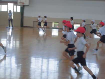 学年で体力テストのシャトルランを行いました。