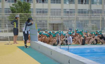 最初に担任が水泳学習の進め方について子ども達に説明しました。