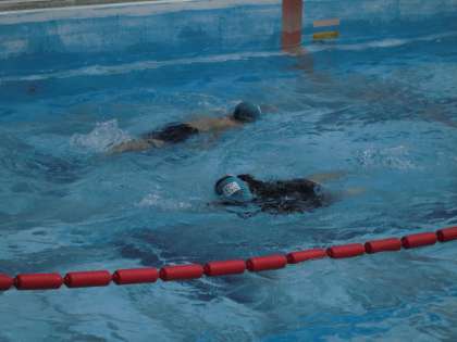 プールで泳ぎました。後半は自分がどれくらいの距離を泳げるのかを確認しました。