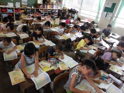 白地図に色をぬって土地の使われかたについて気づいたことを発表しました。