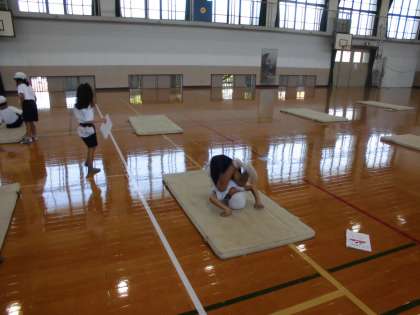 子ども達は学習カードや掲示物を見て,自分が挑戦する技を決めて練習しています。