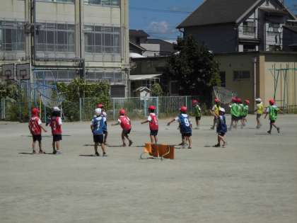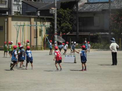 この単元の学習に入って数時間たち,子ども達は素早くボールをパスしてゴールをねらえるようになってきています。
