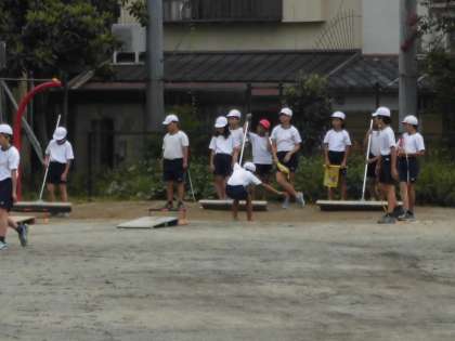 子ども達は助走と踏切を意識して,より遠くへジャンプできるように頑張っています。