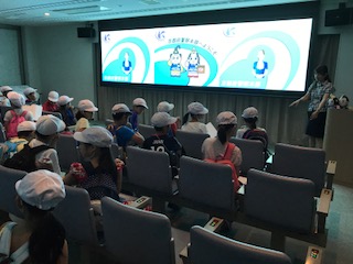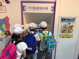 また,交通指令センターでは他にも見学者用ビデオ視聴スペースがあり,強盗犯をどのようにして捕まえるかをビデオで学習しました。ビデオの後は警察に関するクイズに答えました。