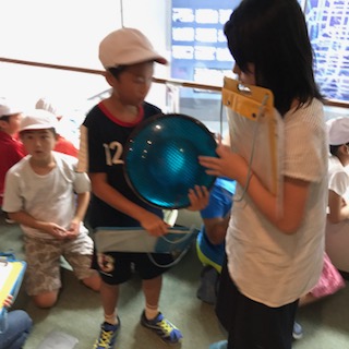 実際に使われていた信号機を触らせてもらい,大きさに驚いていました。