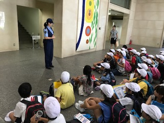 本物の警棒,手錠,警察手帳を触らせてもらって,子ども達は大喜びでした。