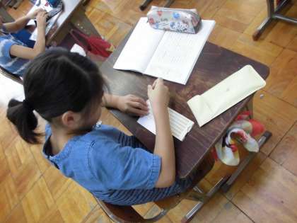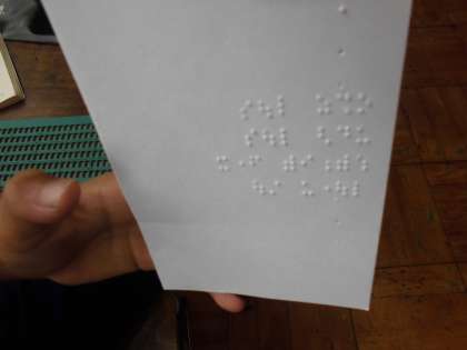点字器を使って文字を打ちました。裏から打つので子ども達にとっては少し難しかったようです。