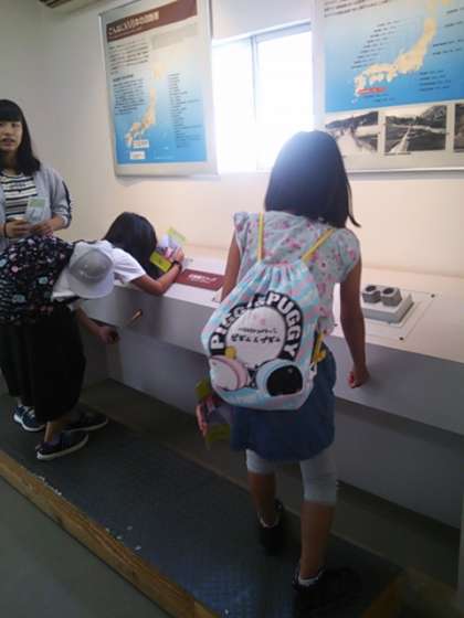 北淡震災記念館では交流学級の友達と一緒に見学しました。
