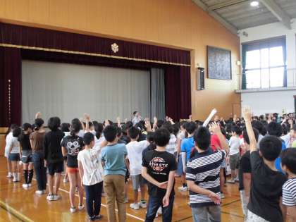 朝会ではまず,絵画展の表彰を行いました。京都市長賞の受賞です。おめでとうございます。