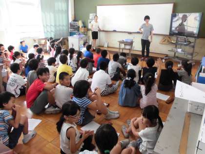 学習発表会に向けて学年で取組を始めました。2組の教室に4年生全員が集まり,学習発表会について話し合いをしました。