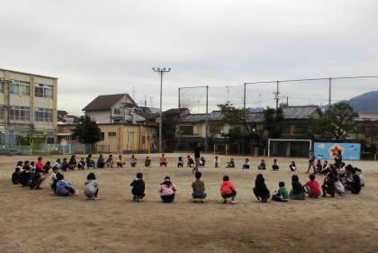 運動場でキャンプファイヤーの流れの確認をしたり,歌の練習をしたりしました。