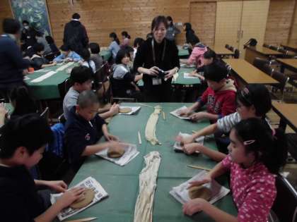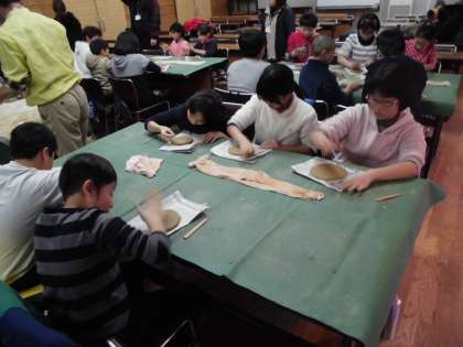 いろいろな形のお皿が出来上がりました。子どもたちが作ったお皿は今後乾燥され,2回焼かれて3月ごろに完成して下鴨小学校に届けられる予定です。