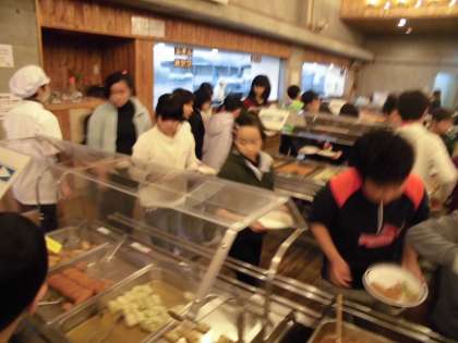 おいしく夕食をいただきました。ビュッフェ形式でたくさん食べた子どももいました。