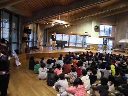 養徳小学校と一緒に朝の集いをしました。山の家の先生からこの宿泊期間に誕生日を迎える子どもたちに素敵なプレゼントをいただきました。