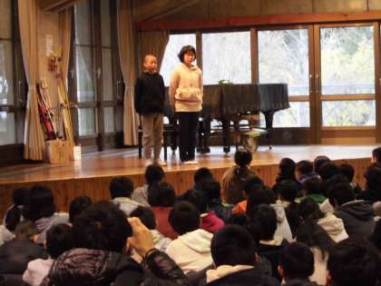 代表の子どもたちが下鴨小学校の紹介をしました。