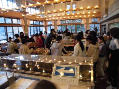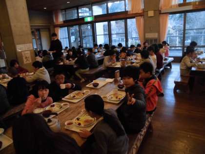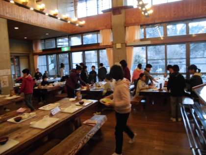 今日の午前中は山道を歩きます。3時間ほどの山道ハイキングに備えて子どもたちはしっかり朝食をとりました。