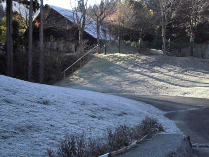 3日目の午前の活動を9時に開始しました。霜が降りて集合場所周辺は真っ白でした。