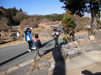 子どもたちは山中に設置されている問題を解きながら歩きました。