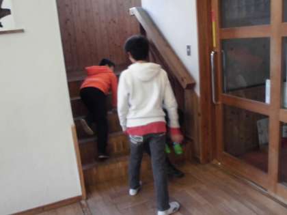 「だるまさんが転んだ」をして休憩時間を楽しんでいる子どももいます。