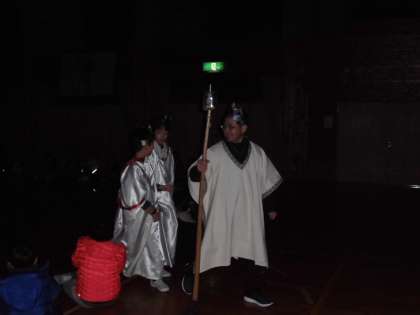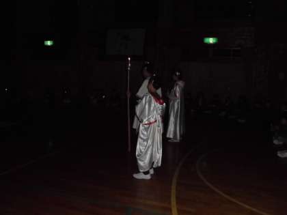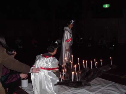 火の神様と火の子どもが数々のキャンドルに友情の炎をつけてキャンドルファイアーが始まりました。