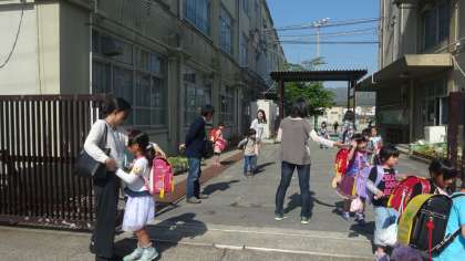 本校では朝の見守り活動とともに、下校時にも1・2年生の見守り活動を地域の方々に行っていただいています。子どもたちも地域の方々と声を交し合いながら、楽しそうに下校しています。