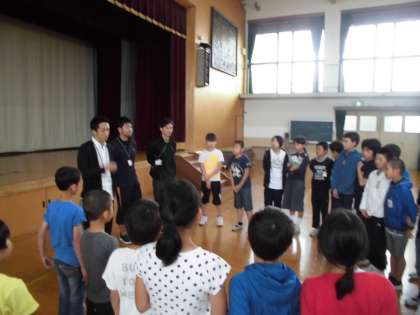 体育館で部活動開講式を行いました。今年度も陸上,バレーボール,バドミントン,音楽,茶道の部活動を行います。子ども達は全体で校長先生の話を聞いた後,それぞれの部活動に分かれて担当の先生から今後の予定等についての話を聞きましした。