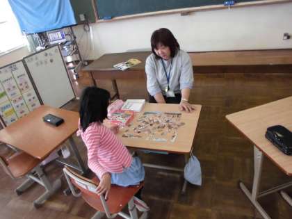 6年と2年のなずな学級の子どもが交流学習に行ってましたので,担任マンツーマンで学習しました。ジグソーパズルに取り組みました。