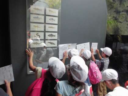 京都水族館では,クイズラリーを楽しみました。その後,イルカショーを見て,イルカの豪快なジャンプに歓声の声を上げていました。