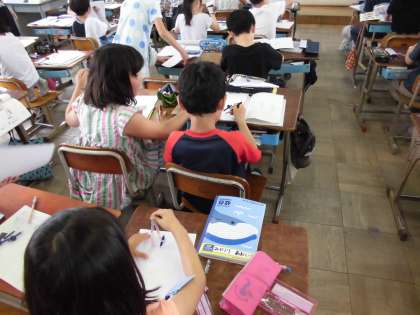 コンパスを使って円をかく練習をしました。コンパスの使い方に慣れていないので少し難しく感じている子どもがいました。