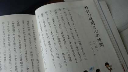国語では「時計の時間と心の時間」を読み進めています。今日は,筆者が自分の考えを文章で伝えるために,どのような工夫がされているか考えました。
