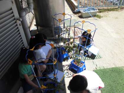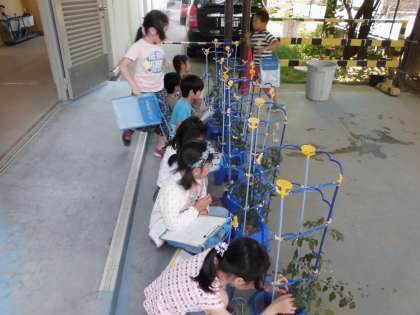 ミニトマトの観察をしました。観察カードに細かなところに気を付けて記入しました。