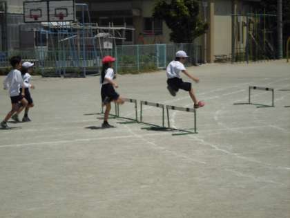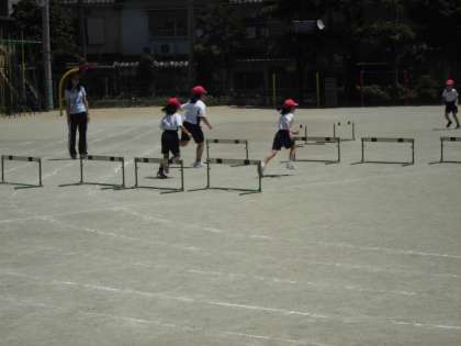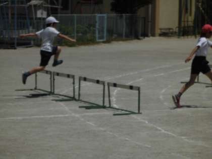 ハードル走の練習をしました。子ども達はリズムよくハードルを跳び越えることを意識していました。